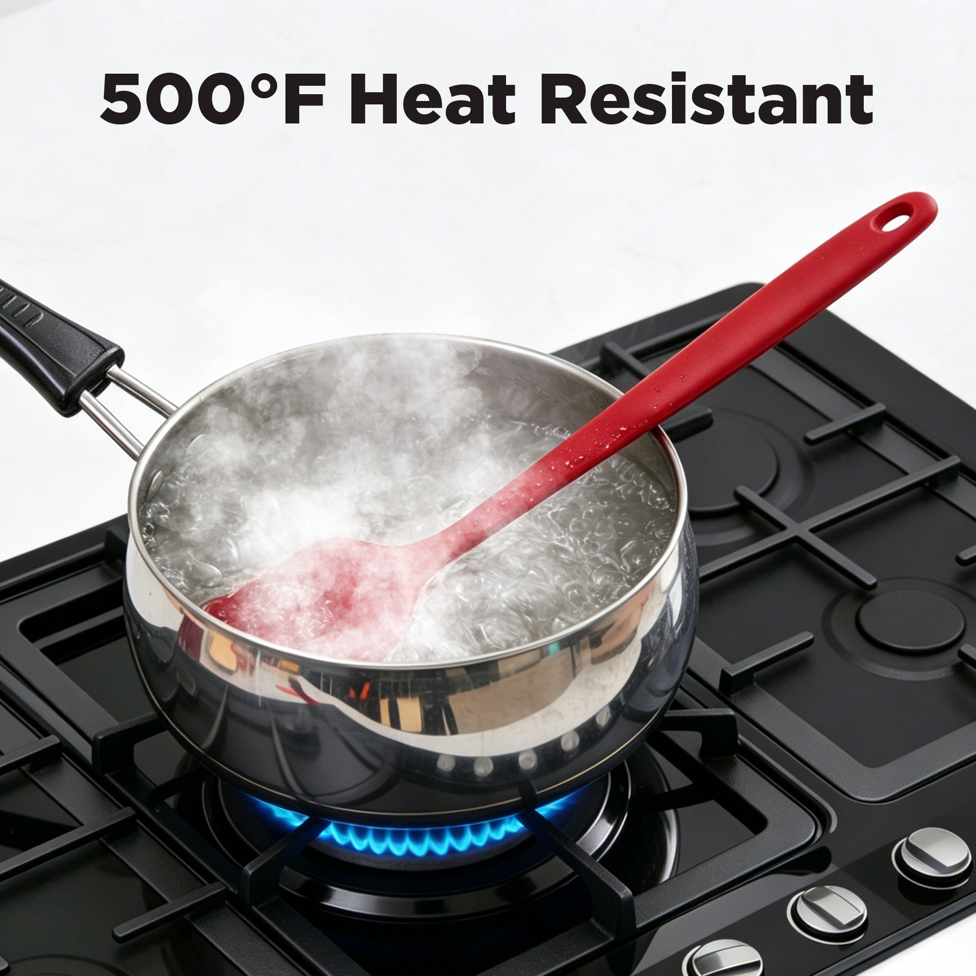 Seamless and Integrated Design:Â Â Each silicone spatula has a seamless whole design, not easy to stick to food and easy to clean, creative shape can be adapted to the bowl, can easily handle a variety of kitchen tasks, perfect conical head and ergonomically designed handle in the process of use will not rust or burn your hand. This Cooking Utensil Set is soft and powerful tip can be used for turning, stirring, scraping and folding all kinds of food.