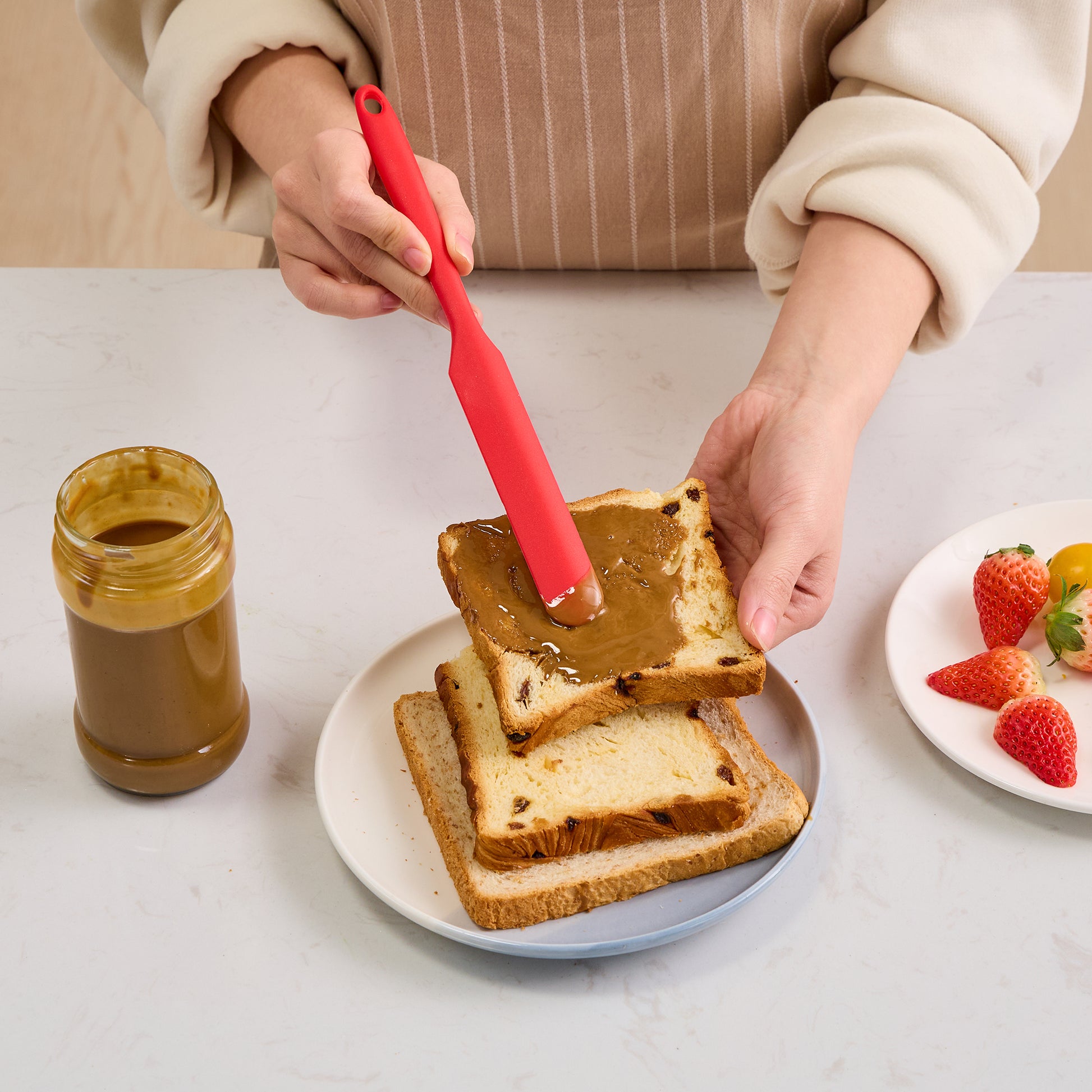 6 Pieces In One Box:Â There are 1 X Small Silicone Spatula, 1 x Large Red Silicone Spatula, 1 x Small Spoon, 1 x Large Rubber Spoon Spatula, 1x Rubber Basting Pastry Brush, 1x Rubber Jar Spatula, which can meet your different cooking, baking, stirring needs, it will become your effective kitchen helper, let you feel the joy of cooking.